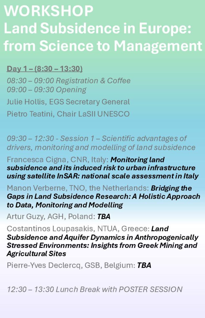 We proudly present a workshop jointly organized by UNESCO’s Working Group on Land Subsidence (LaSII) and the Geological Service for Europe (GSEU). The workshop is being held in conjunction with the celebration of the 50th anniversary of the UNESCO International Hydrological Programme and 60 years of water sciences at UNESCO.