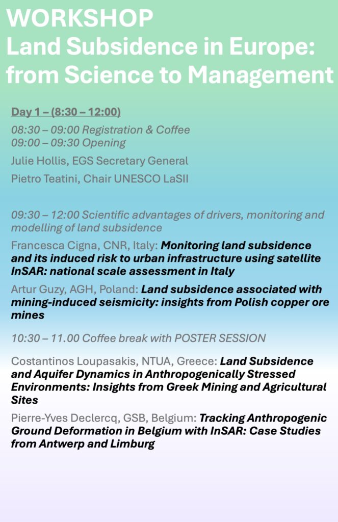 We proudly present a workshop jointly organized by UNESCO’s Working Group on Land Subsidence (LaSII) and the Geological Service for Europe (GSEU). The workshop is being held in conjunction with the celebration of the 50th anniversary of the UNESCO International Hydrological Programme and 60 years of water sciences at UNESCO.